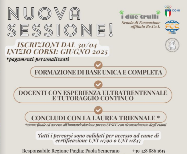 Formiamo appassionati e professionisti cinofili con Corsi di Specializzazione.